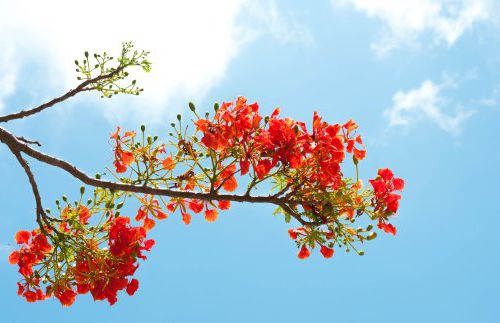 the red Royal Poinciana flower on sky